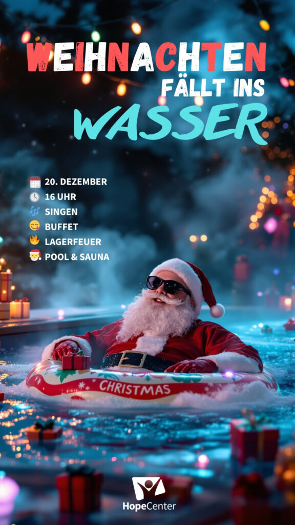 Warum „Verrückte Weihnachten“? – Weil wir einen Whirlpool und eine Sauna aufstellen werden, denn was kann es besseres geben in der kalten Jahreszeit? Bring also Badehose und Handtuch mit!